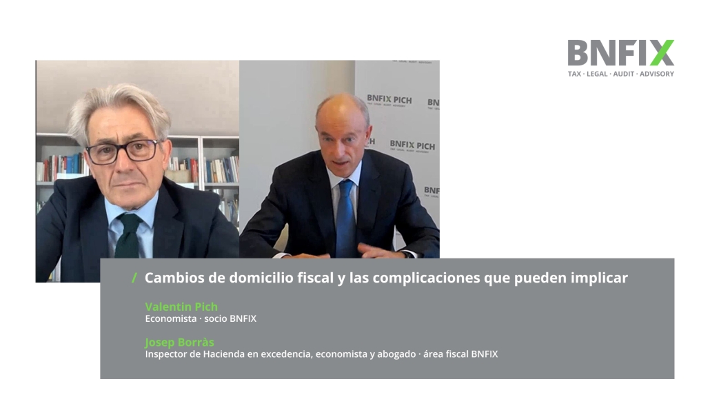 En una charla con nuestro socio Valentí Pich, Josep Borrás, del Área Fiscal en BNFIX PICH, repasa, entre otros temas, qué se entiende como domicilio fiscal, qué criterios deben cumplirse para determinar en uno ú otro lugar el domicilio fiscal, los medios de comprobación, las sanciones que se pueden imponer, etcétera.