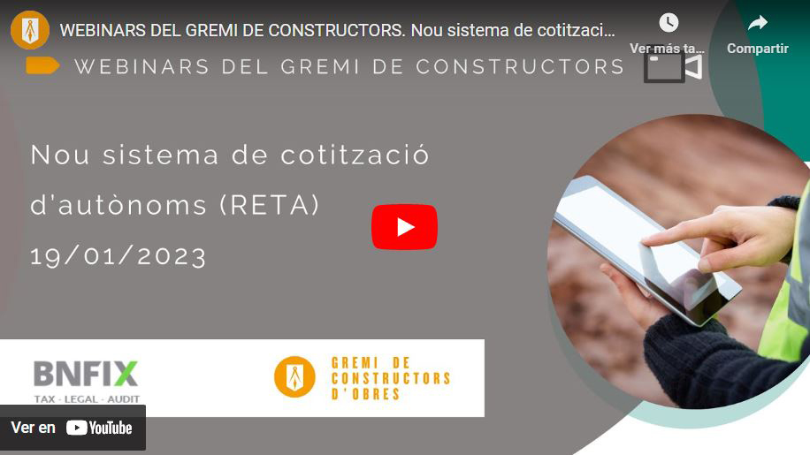 La consultora Sara Bueno, del Área Laboral de BNFIX GLOBAL, participó el 19 de enero en una sesión informativa organizada por el Gremio de Constructores de Obras de Barcelona y Comarcas para explicar los principales cambios que ha supuesto el nuevo sistema de cotización de los trabajadores autónomos y que entró en vigor el 1 de enero.